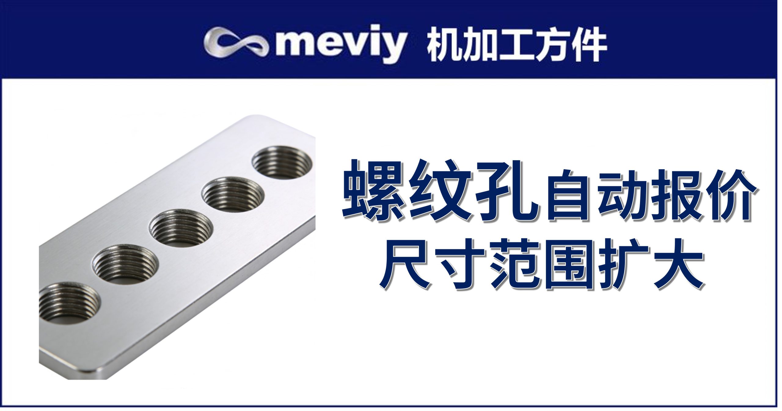 【机加工方件】 螺纹孔自动报价尺寸范围扩大